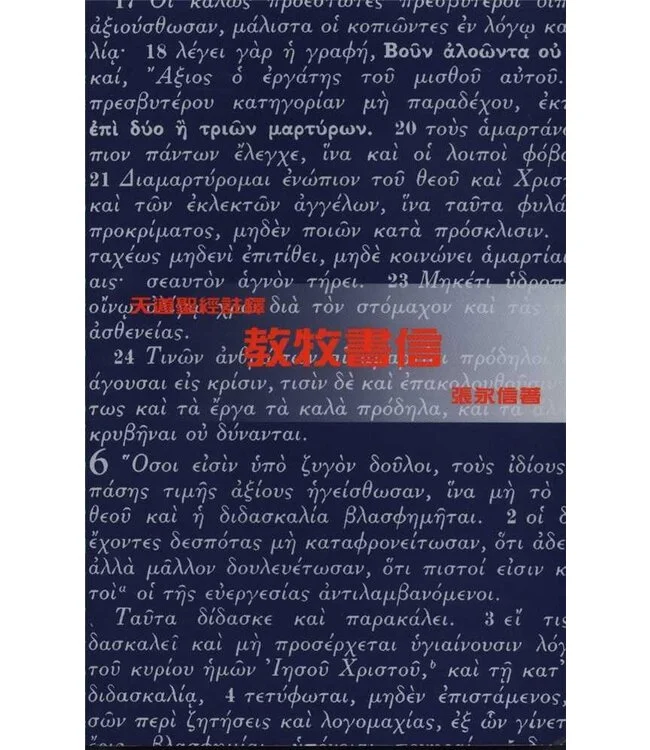 保羅深知道蒙召餵養上帝的羊,不是一件易事。故此他分別去信給兩位「真兒子」提摩太及提多,提醒、鼓勵、勸勉、教導他們如何牧養。作者張永信博士結合學術及牧養心得,定必成為今天牧人的參考和指引。 (本書初版為「聖經研究叢書」之《教牧書信註釋》)
